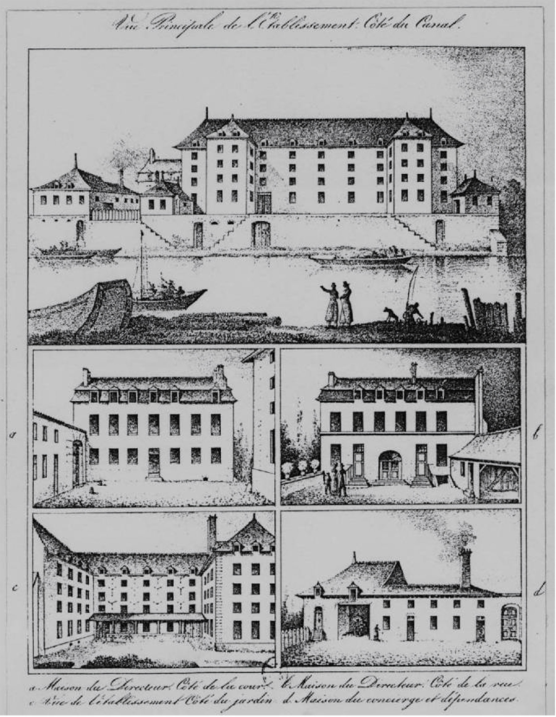 Une grue permettant de charger et décharger les marchandises est installée entre le canal et le bâtiment principal.