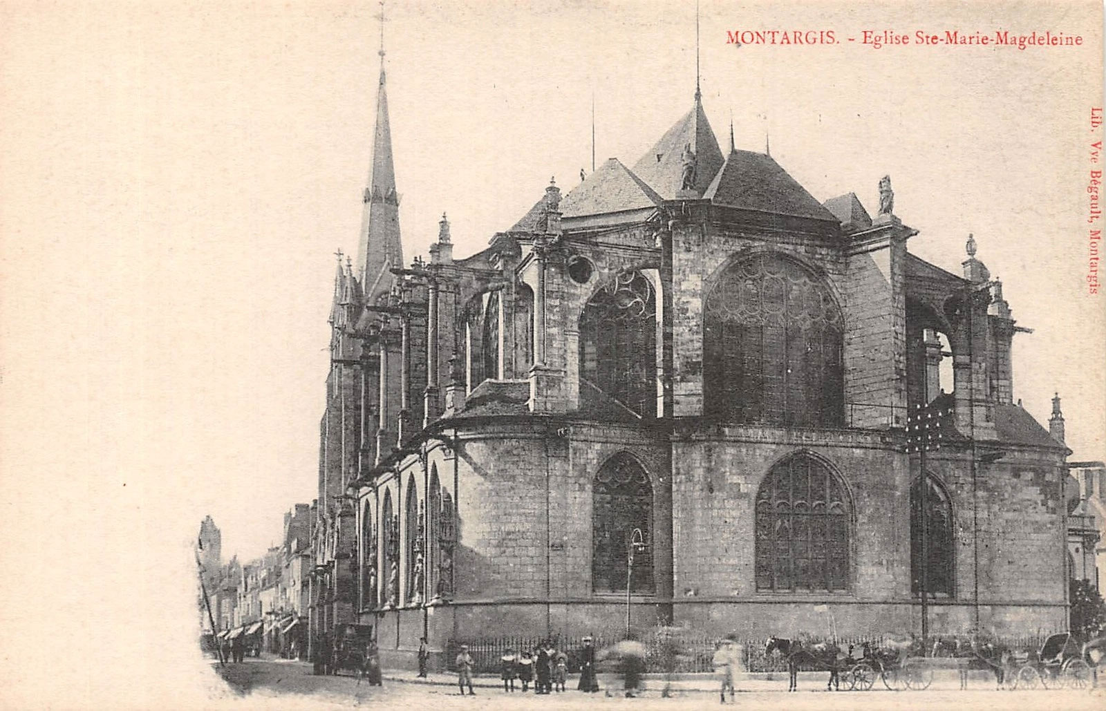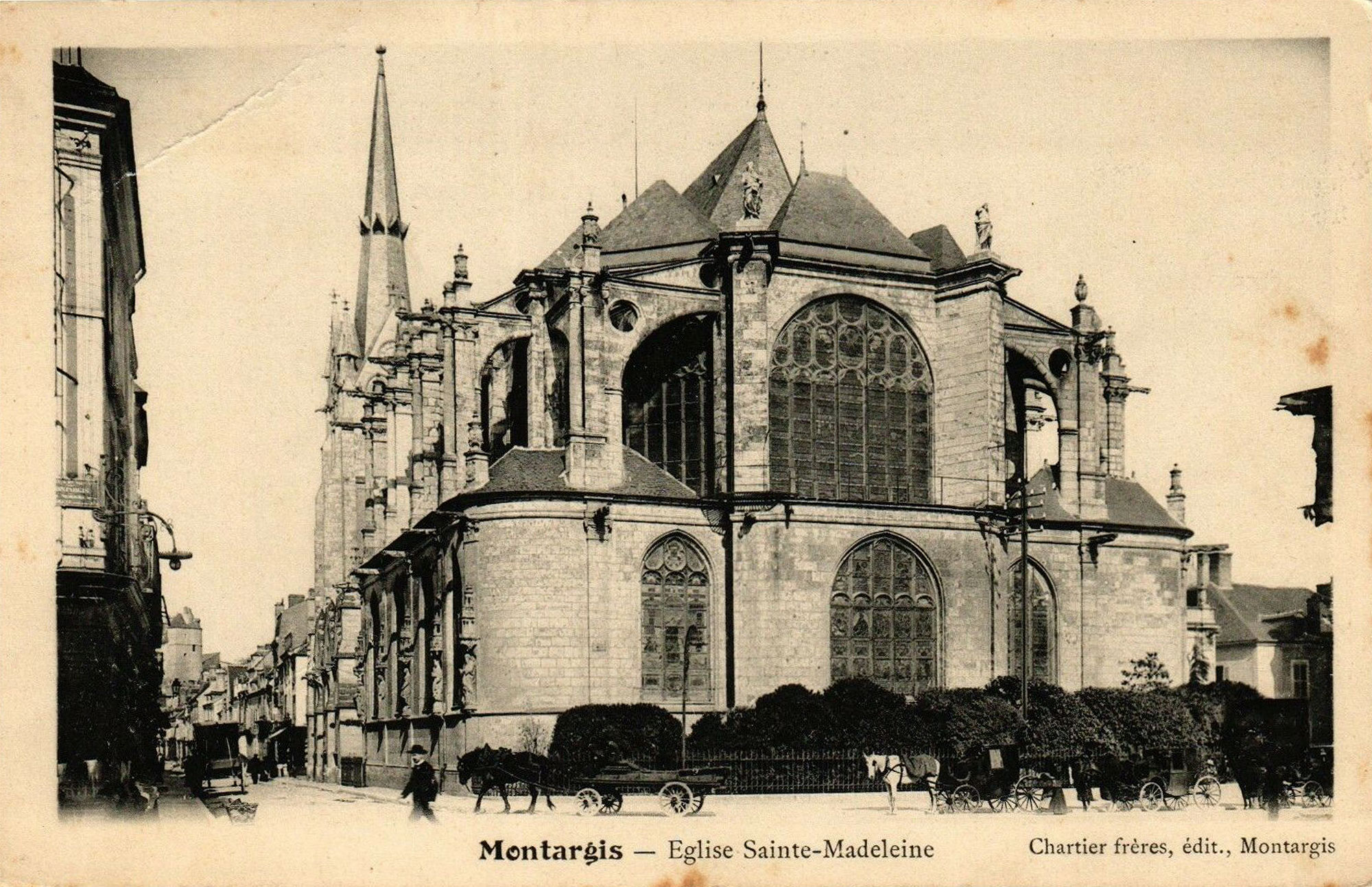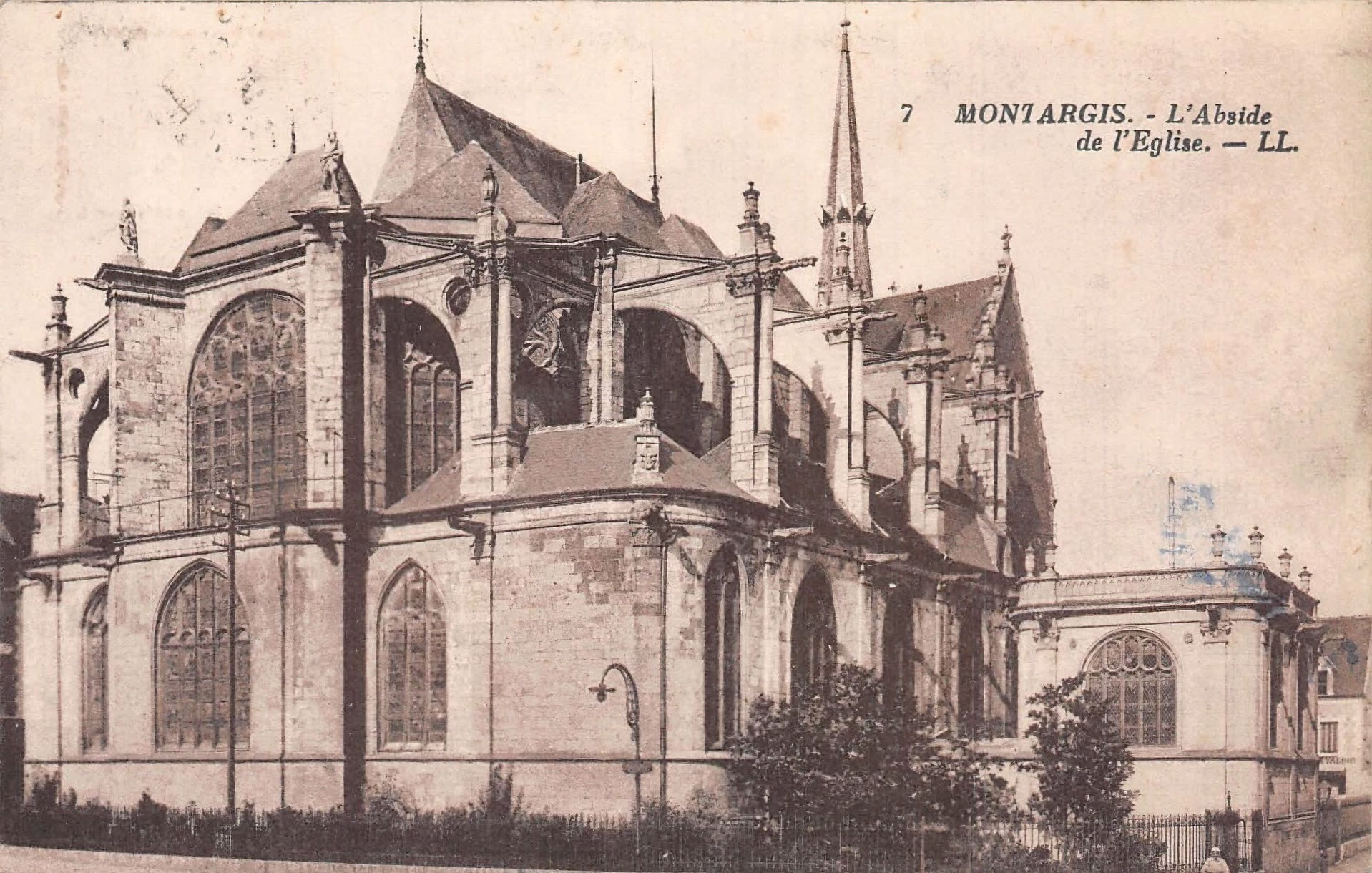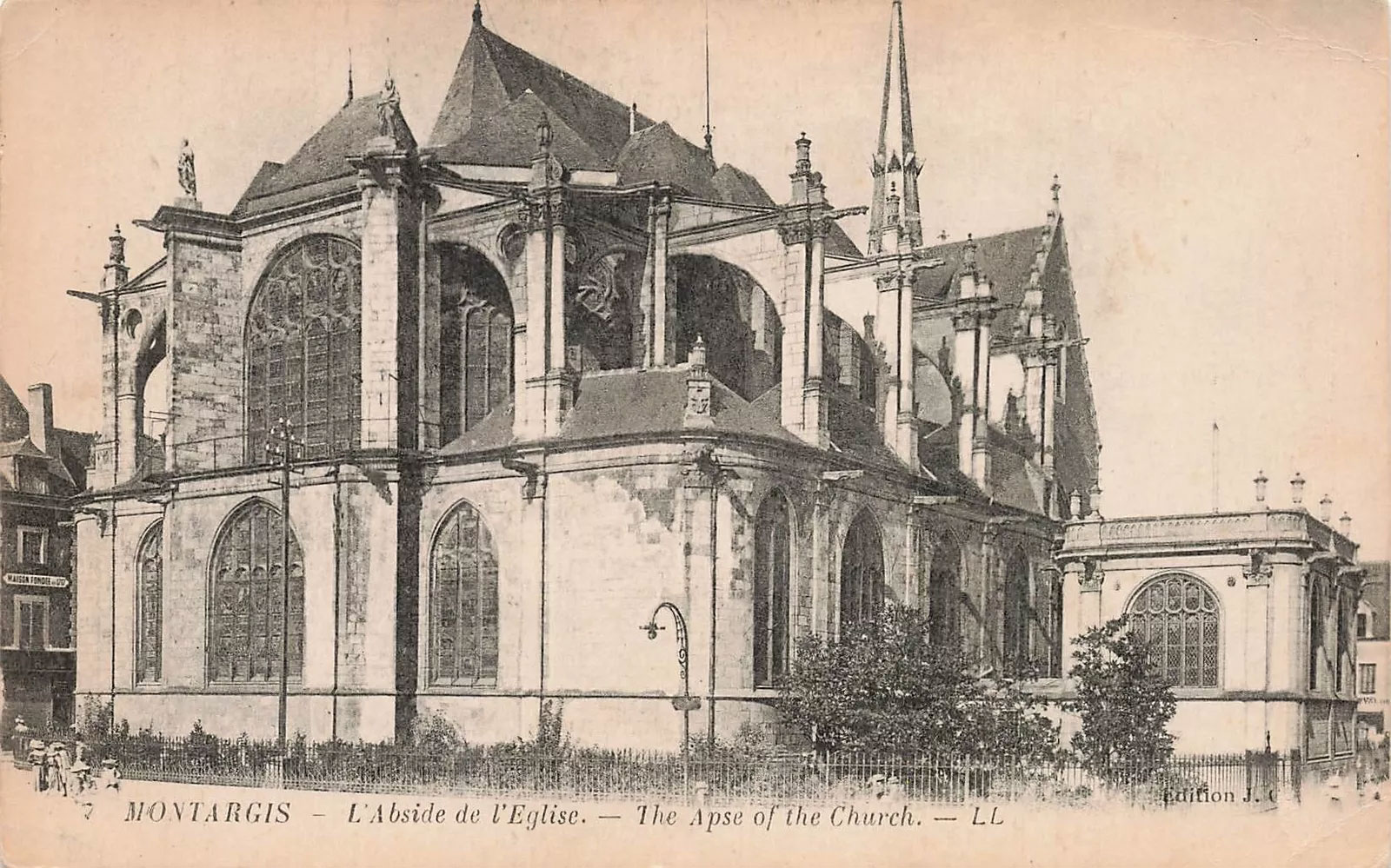 Auparavant, il y avait là un pâté de maisons assez basses, délimité par quatre rues : la première était notre rue de Loing, la deuxième devant le chevet de l’église, n’avait pas de nom officiel : on l’appelait « la ruelle du cloître » ou « la ruelle qui mène au cloître ». Il s’agissait des logements et du cloître des chanoines. Au rez-de-chaussée de ces bâtiments, il y avait des boutiques. La troisième, aujourd’hui rue Triqueti / rue du Grenier à Sel, était la rue des Pourceaux.