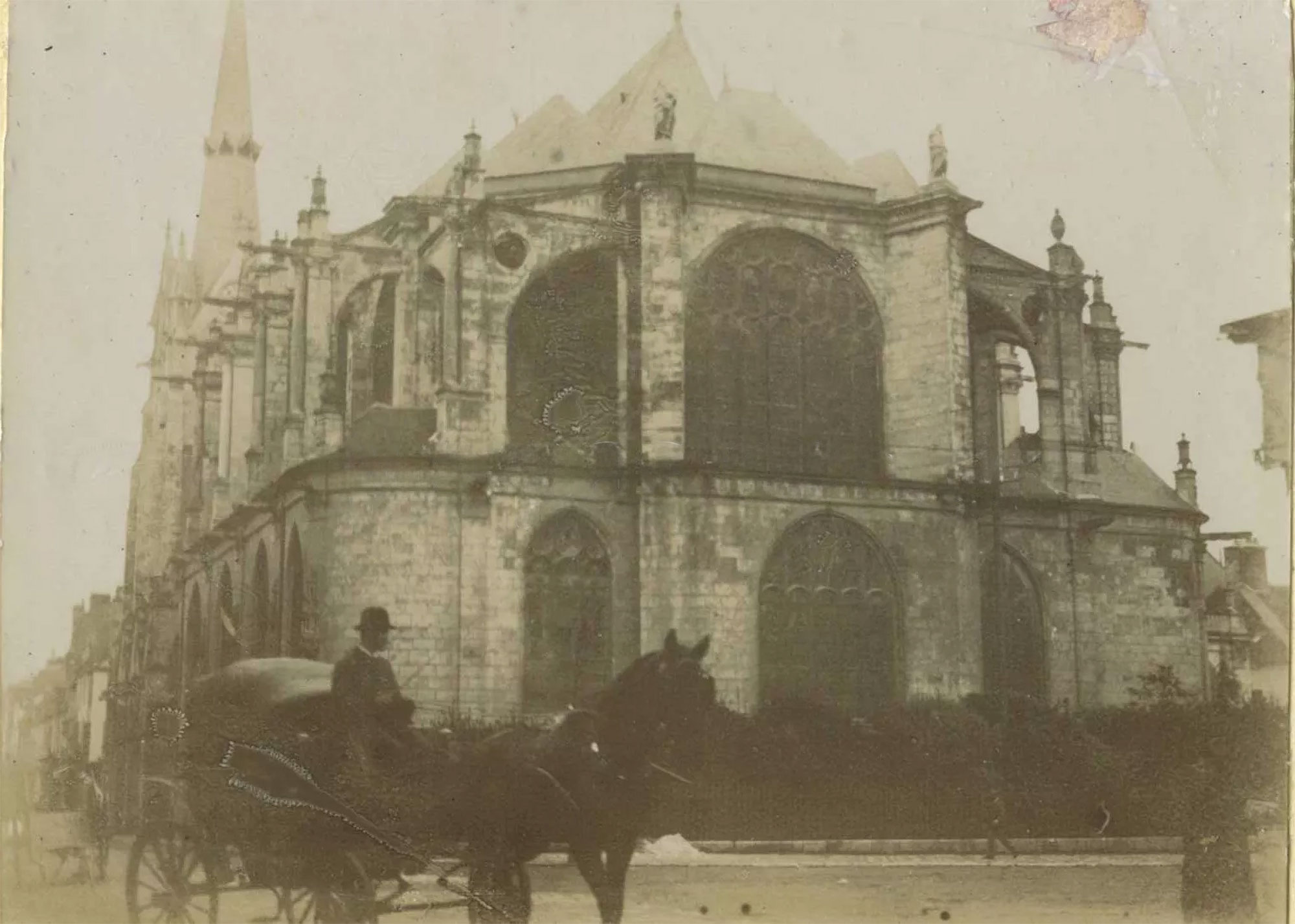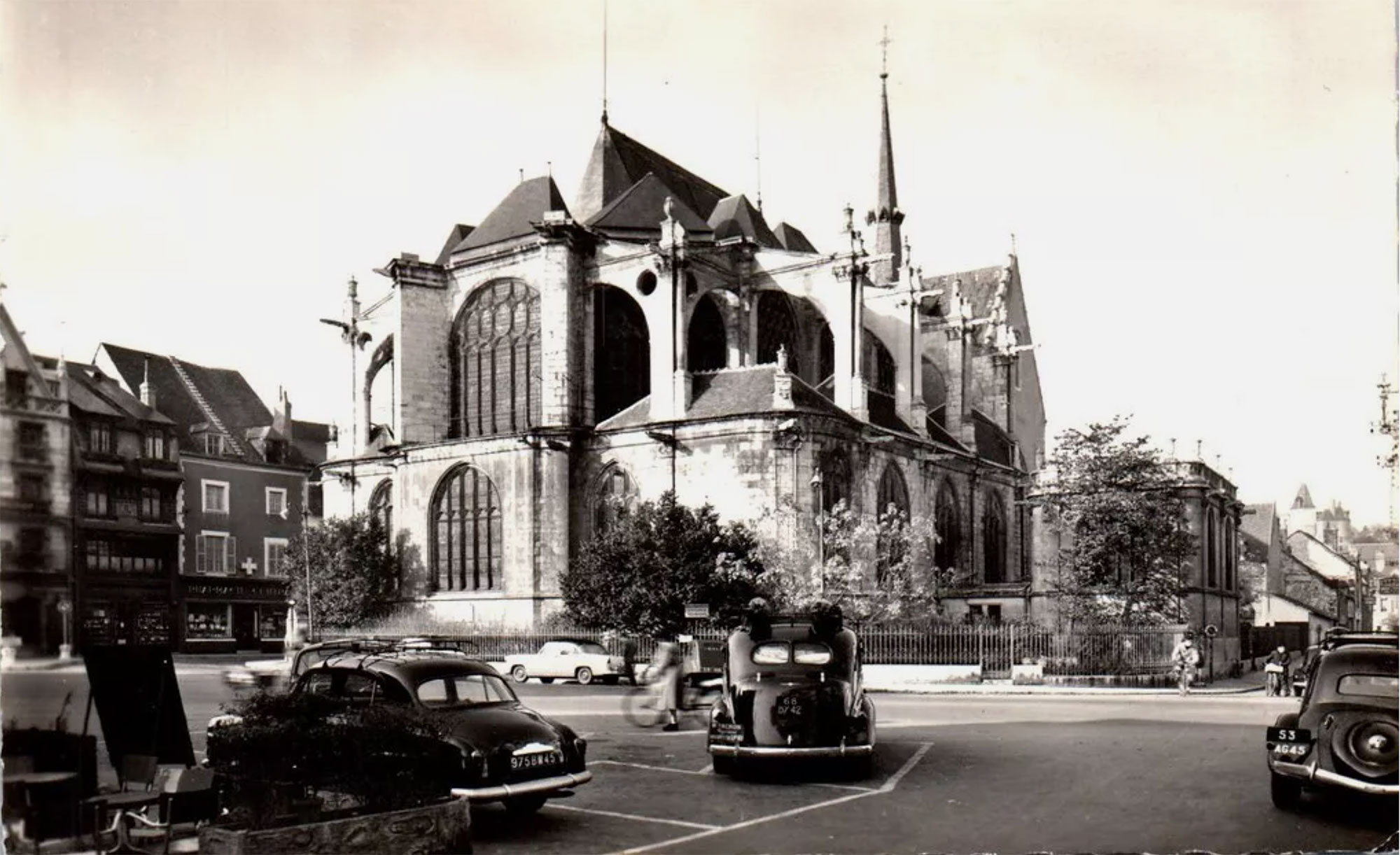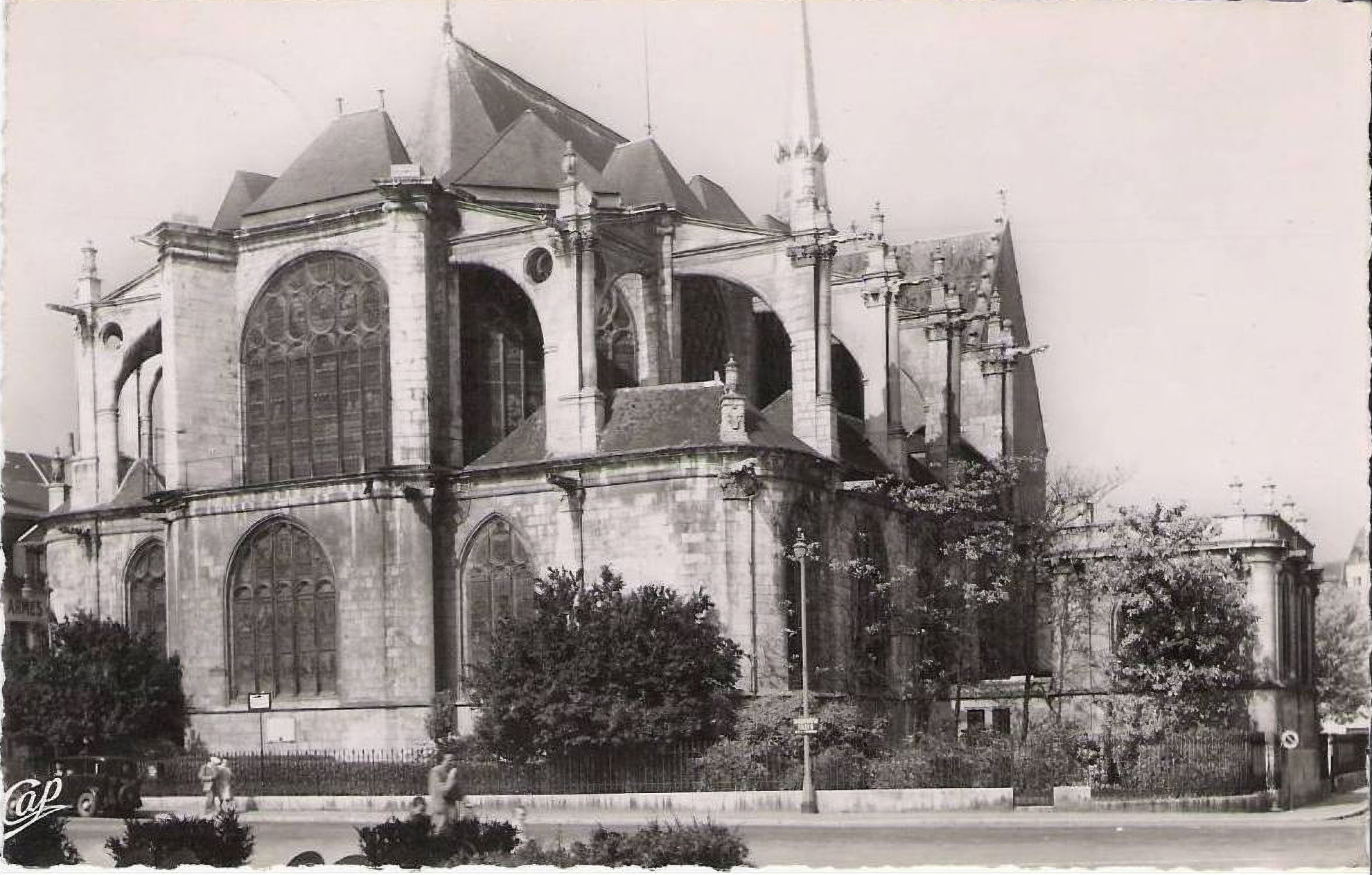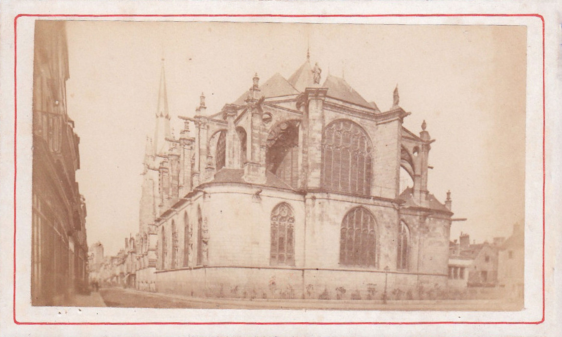Auparavant, il y avait là un pâté de maisons assez basses, délimité par quatre rues : la première était notre rue de Loing, la deuxième devant le chevet de l’église, n’avait pas de nom officiel : on l’appelait « la ruelle du cloître » ou « la ruelle qui mène au cloître ». Il s’agissait des logements et du cloître des chanoines. Au rez-de-chaussée de ces bâtiments, il y avait des boutiques. La troisième, aujourd’hui rue Triqueti / rue du Grenier à Sel, était la rue des Pourceaux.