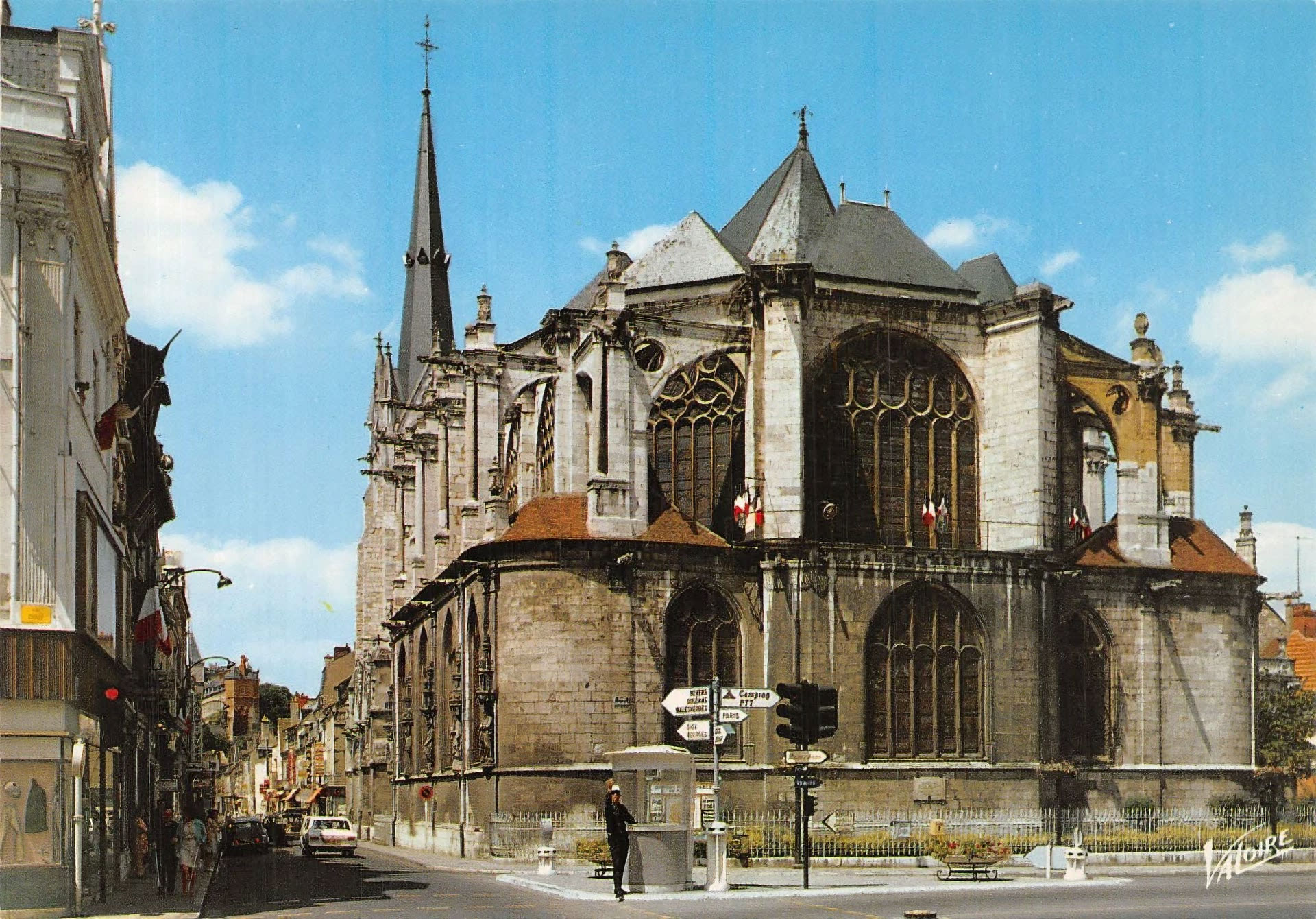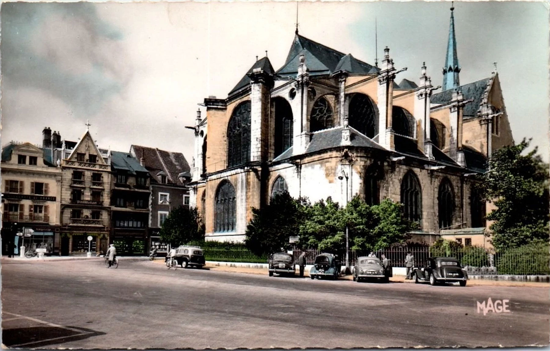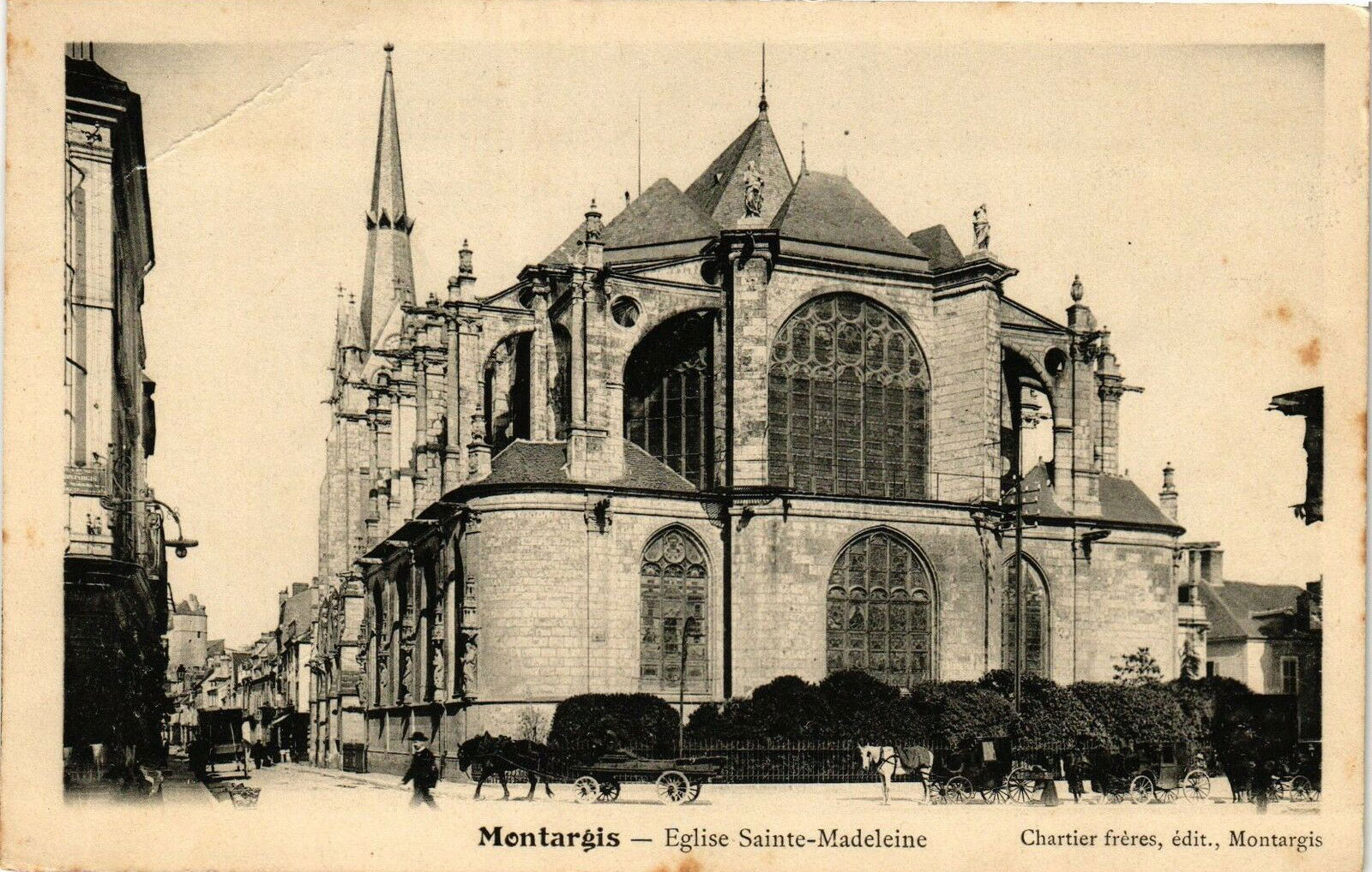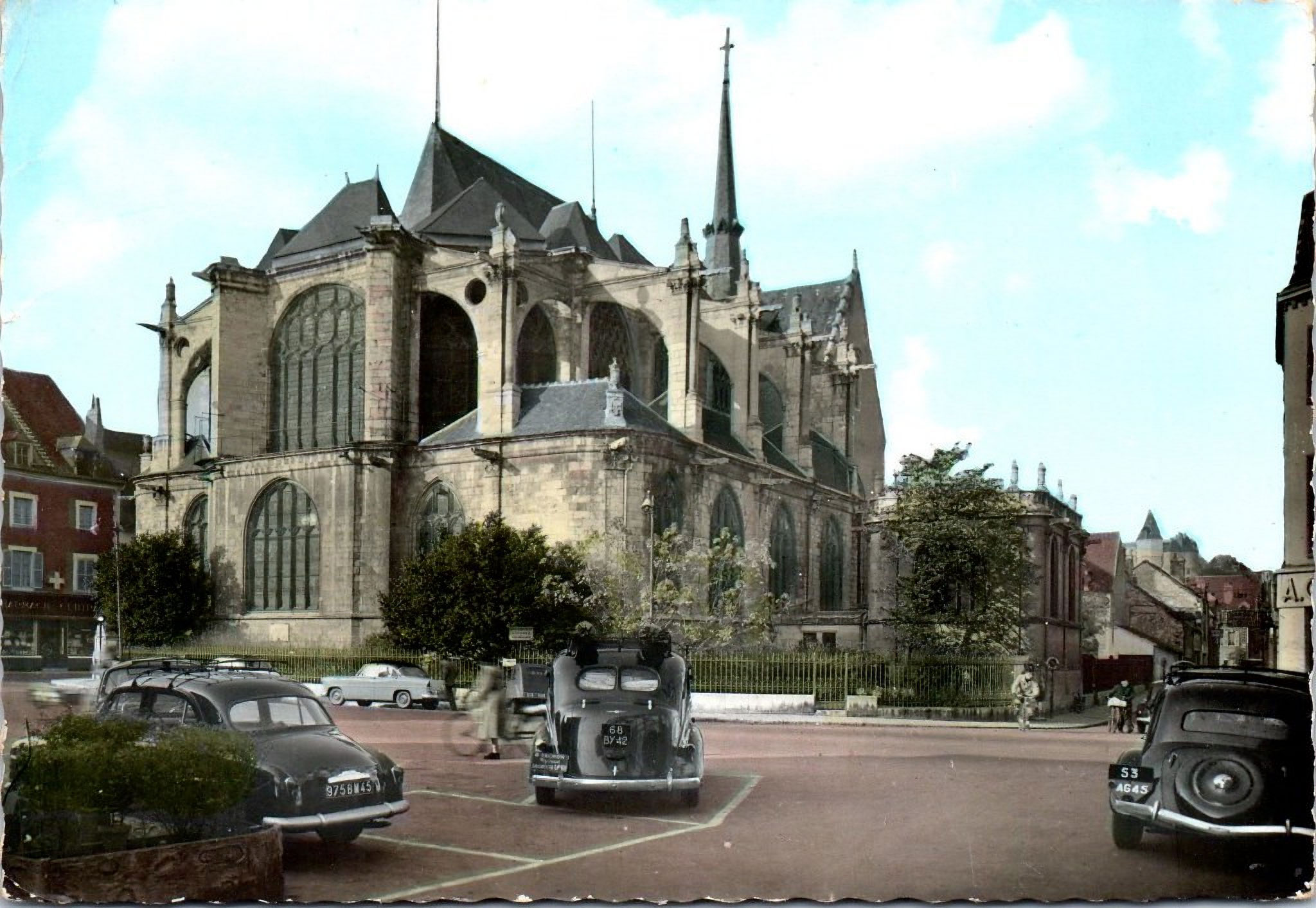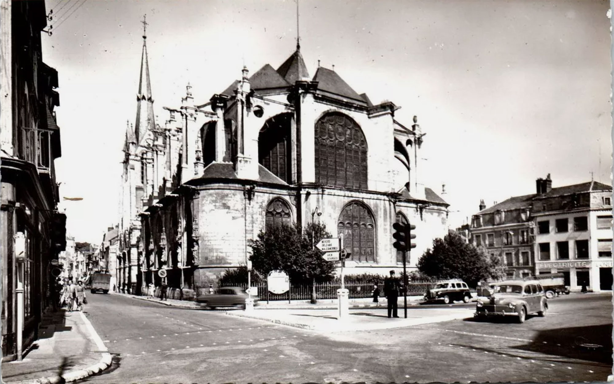 Auparavant, il y avait là un pâté de maisons assez basses, délimité par quatre rues : la première était notre rue de Loing, la deuxième devant le chevet de l’église, n’avait pas de nom officiel : on l’appelait « la ruelle du cloître » ou « la ruelle qui mène au cloître ». Il s’agissait des logements et du cloître des chanoines. Au rez-de-chaussée de ces bâtiments, il y avait des boutiques. La troisième, aujourd’hui rue Triqueti / rue du Grenier à Sel, était la rue des Pourceaux.