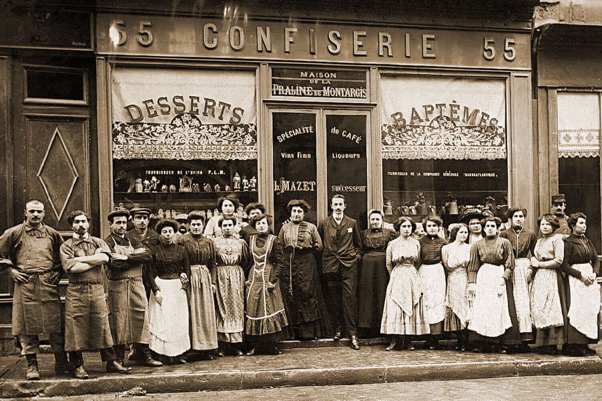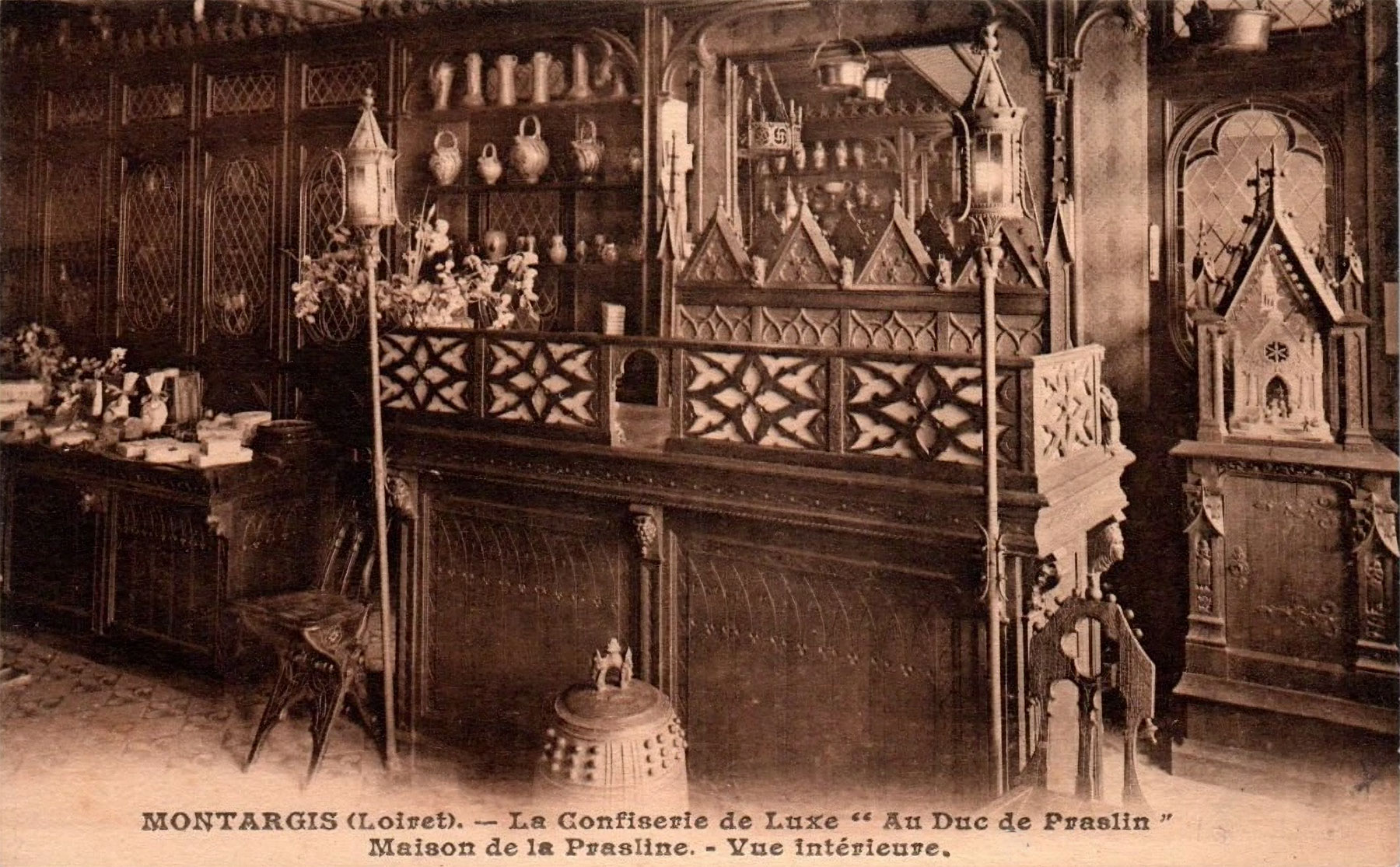 La maison Mazet est fondée en 1903. Léon Mazet et sa femme Jeanne Vieillard, fille de chocolatier, s’installent à Montargis en rachetant la confiserie de monsieur Huet ainsi que la recette de la prasline détenue par sa boutique située dans la rue du Loing (actuelle rue du général-Leclerc).