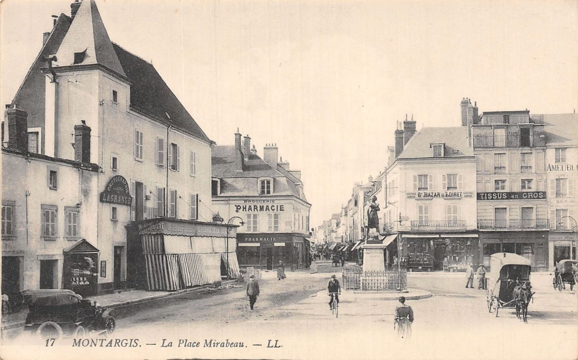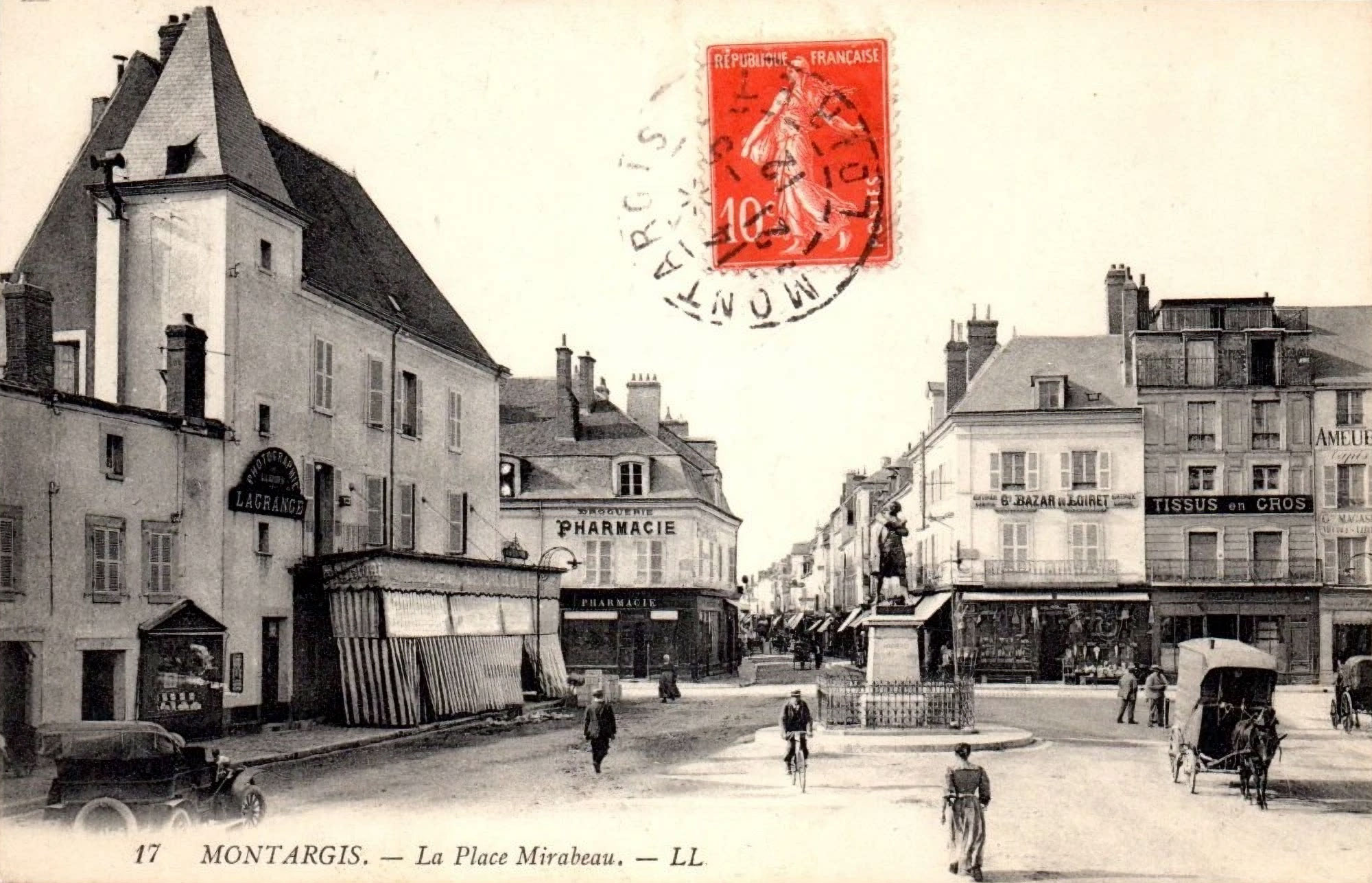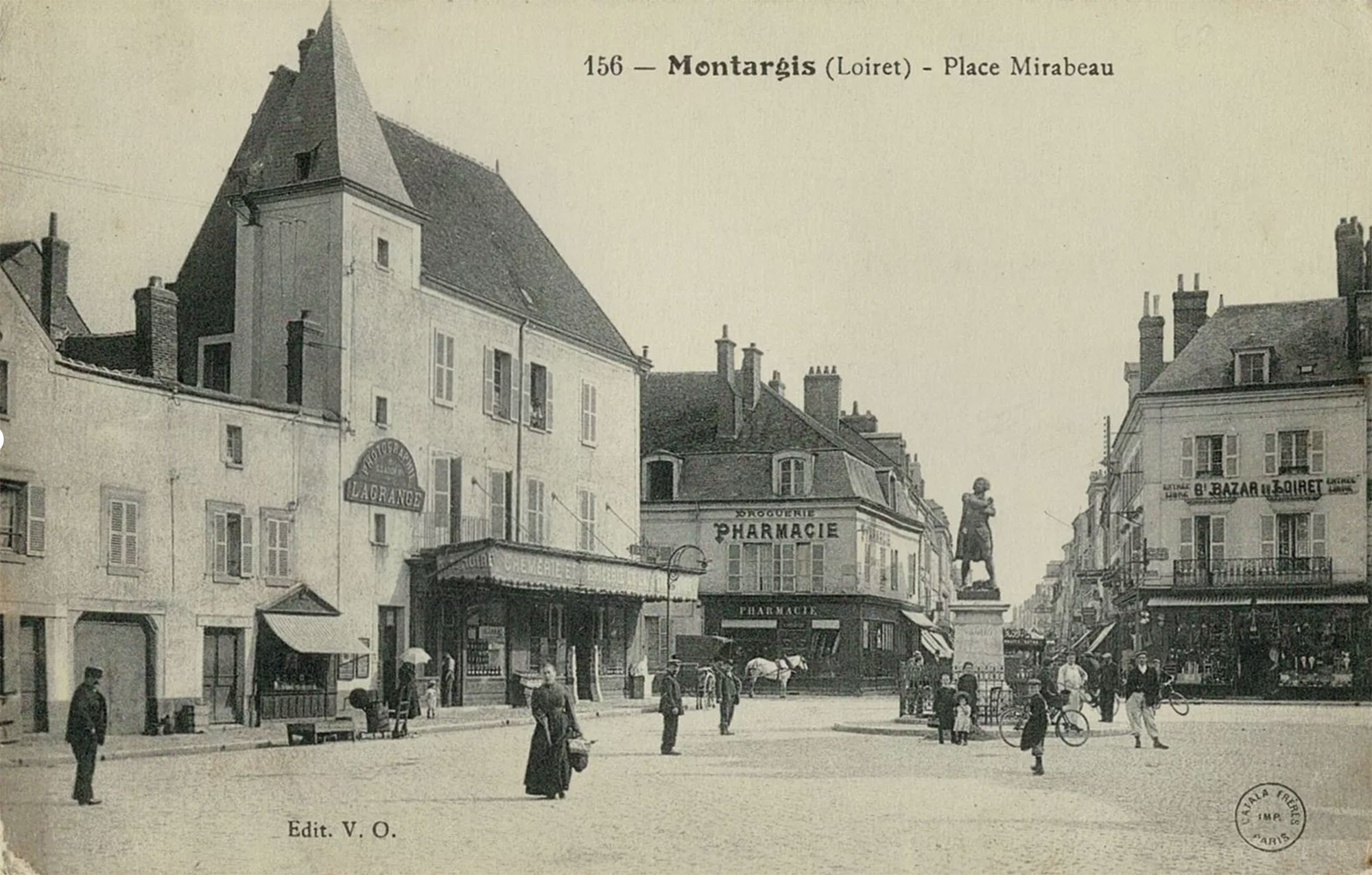 La Banque de France remplaça un café en 1904 1914; les enseignes changent de nom: le Bazar du Loiret, les maisons Faucard, Lador, Caiffa, Damoy sont du passé, la maison Cherbuy qui avait remplacé la boucherie du Centre a elle-même disparu…..