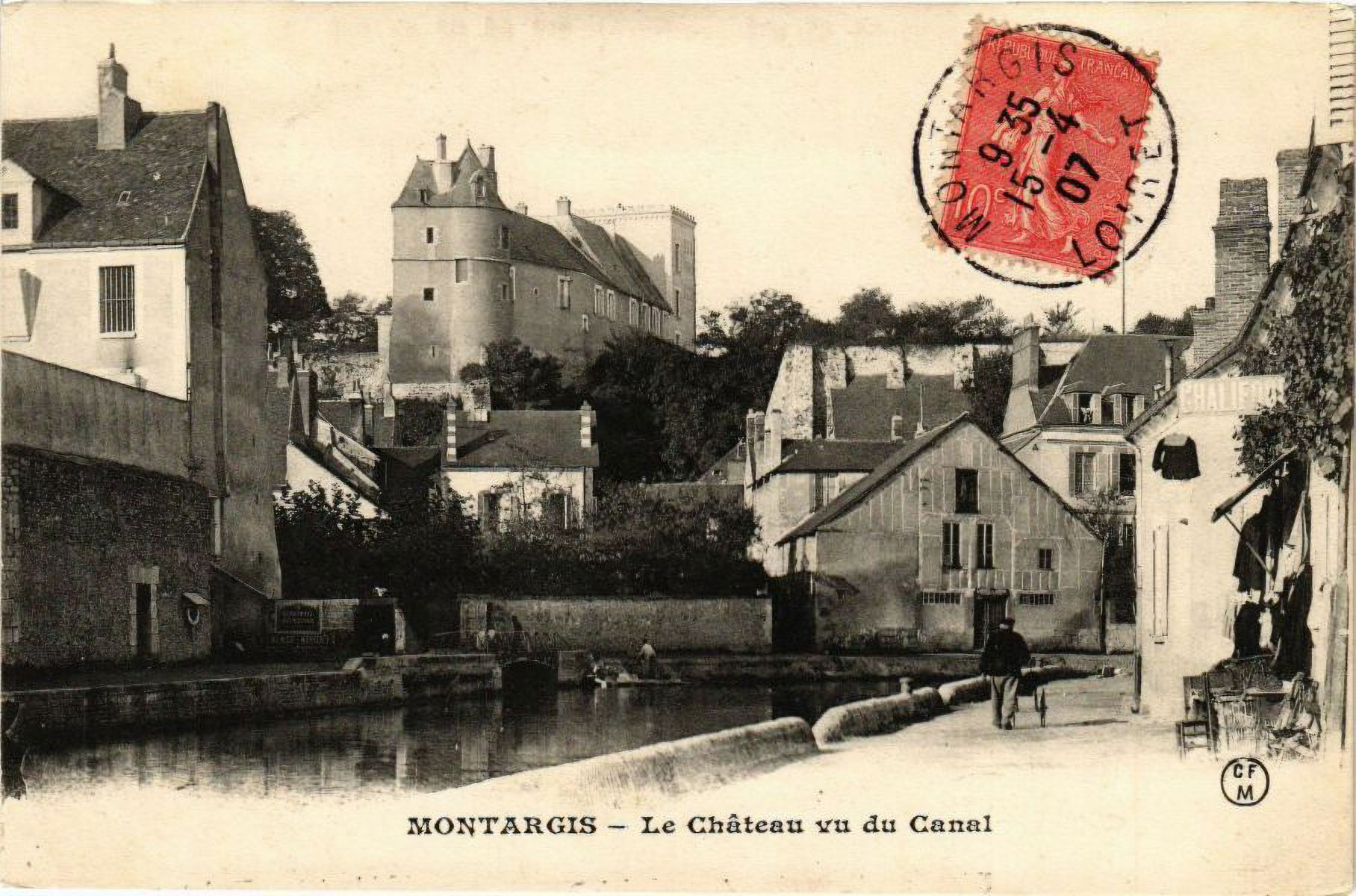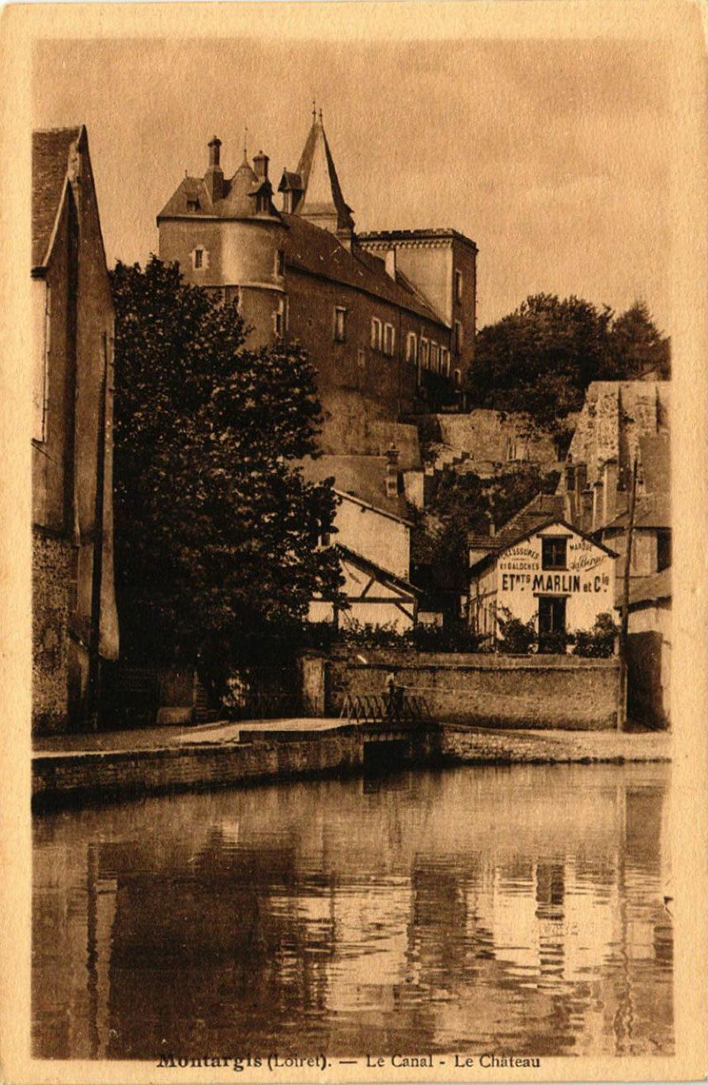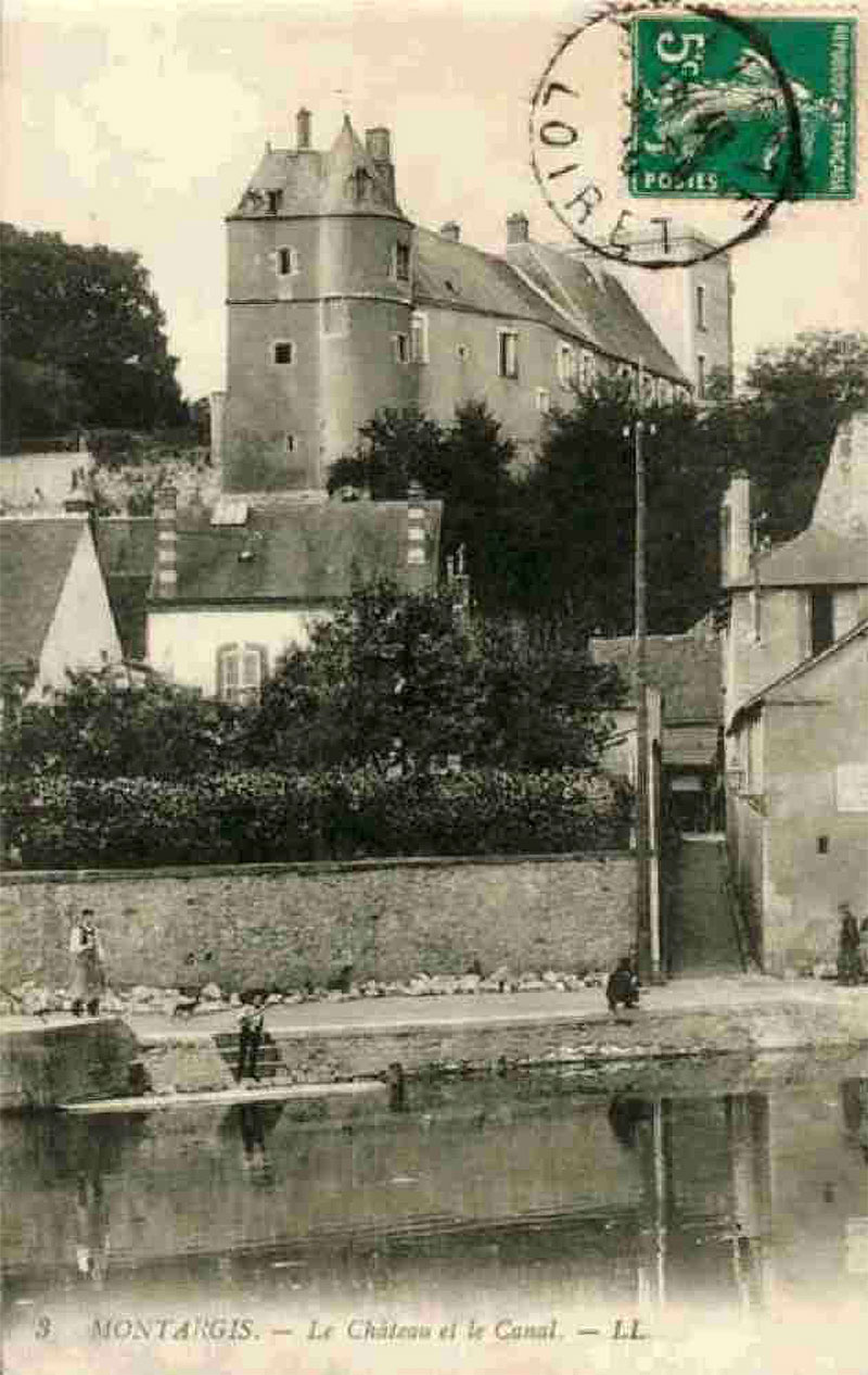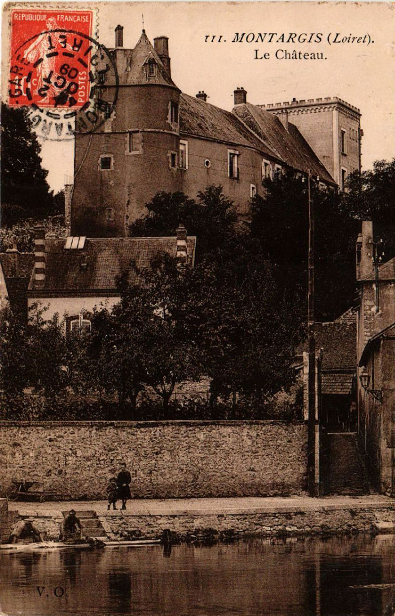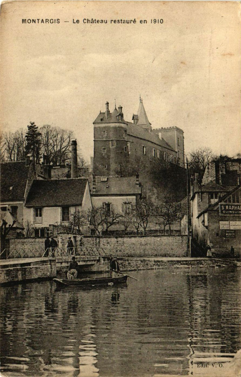 1910, le château de Montargis est restauré. Remarquez la tourelle retrouvée.